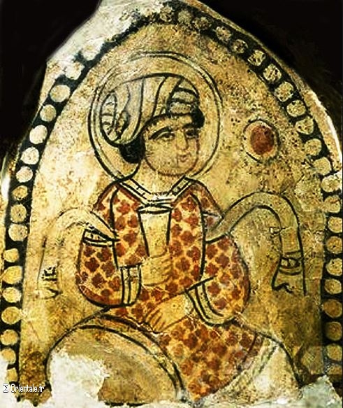 Illustrations : Fragment de peinture murale égyptienne avec un homme buvant du vin, 10eme s. Bracelet égyptien avec l'œil d'Horus protecteur: un modèle semblable à celui-ci a été retrouvé dans le tombeau d'Osorkon Ier.
