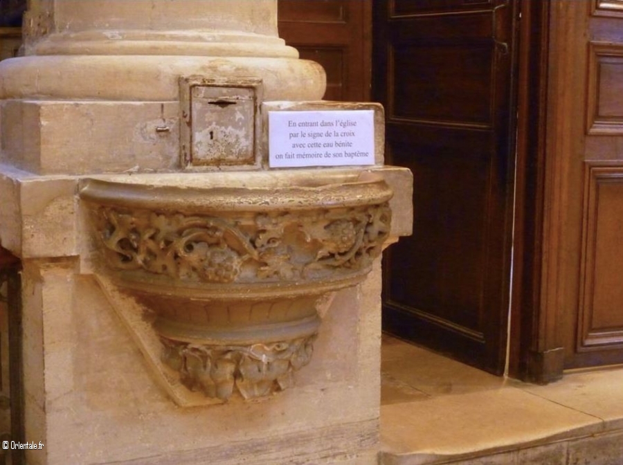 Beau bénitier situé à l'entrée d'une église à Paris