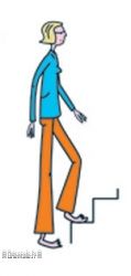 Poser un pied sur une marche d’escalier, le redescendre et alterner avec l’autre jambe. Pour renforcer les jambes et faciliter le retour veineux.